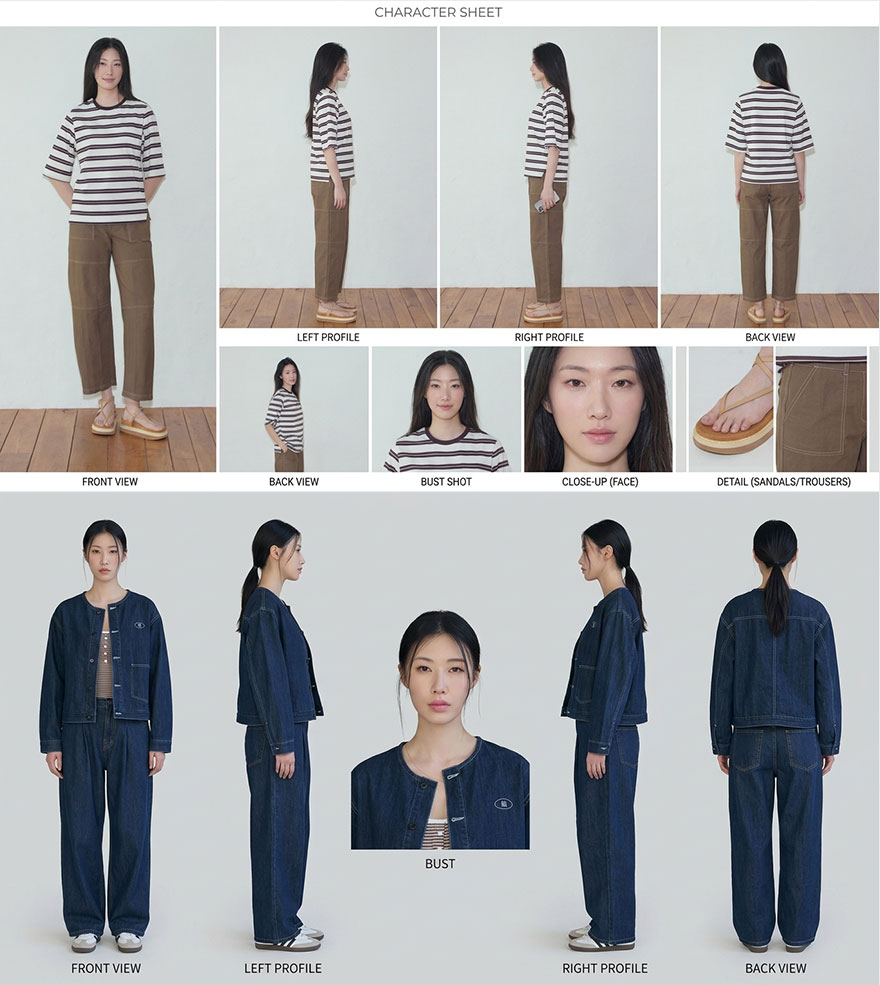 수많은 시행착오 끝에 결국 하나의 해법을 찾아냈습니다. 상품의 전면, 측면, 후면을 모두 담은 ‘캐릭터 시트’를 먼저 제작한 뒤, 이를 기반으로 영상화하면 왜곡이 현저히 줄어든다는 사실을 발견한 것입니다. 지금은 이 방법이 팀의 기본 프로세스로 자리 잡았습니다.