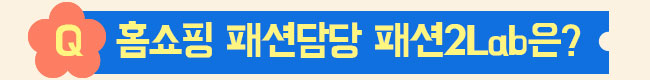 안녕하세요, 홈쇼핑 패션담당 패션2Lab입니다! 패션과 언더웨어 두 가지 카테고리를 아우르며, 각자의 자리에서 최선을 다하는 ‘어벤져스’ 같은 팀입니다.