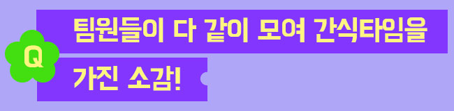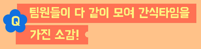 신청 사실도 잊고 있었는데 당첨 소식을 듣고 정말 기뻤습니다! 항상 고생하는 팀원들을 위해 해줄 수 있는 게 많지 않았는데, 함께 소중한 시간을 보낼 기회가 생겨 뿌듯했습니다. 앞으로 넘어야 할 산이 많겠지만, 그때마다 떠올릴 수 있는 소중한 시간이 하나 더 생긴 것에 감사합니다. 다른 팀에도 간식 이벤트를 적극 추천하고 싶습니다!