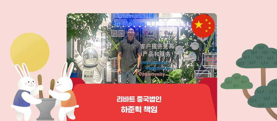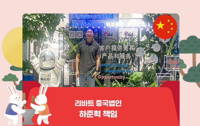 안녕하세요! 리바트 중국법인에서 근무 중인 하준혁입니다. 저는 중국에서 한국 본사에 수출되는 소파, 식탁 등 가구 제품의 소싱과 품질관리를 담당하고 있으며, 최근에는 신규 자재 소싱 확대를 위해 큰 노력을 기울이고 있습니다.