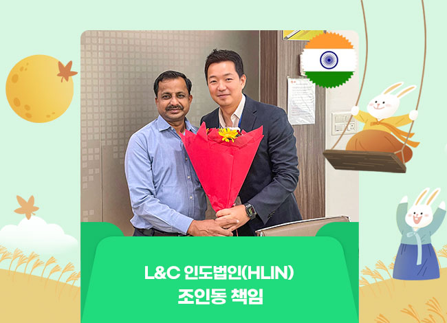 안녕하세요, 인도에서 L&C의 인테리어 필름과 신규 소재 사업을 담당하는 조인동 책임입니다. 저희 법인은 인도 전역에서 인테리어 자재 시장 확대를 위해 현지 마케팅과 영업, 신규 사업 개발을 진행하고 있습니다.