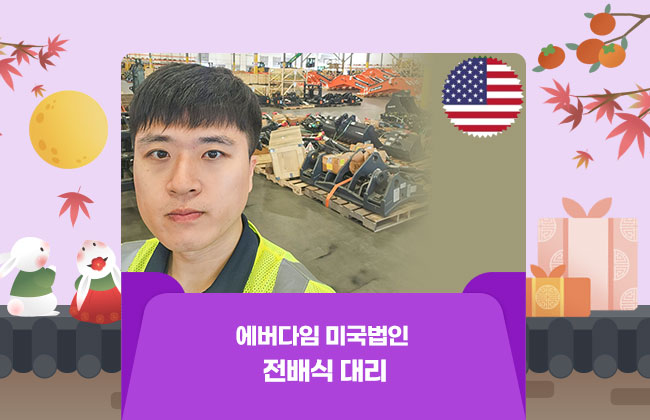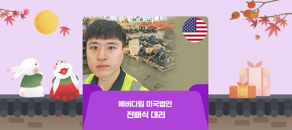 안녕하세요, 에버다임 미국법인에서 근무 중인 전배식 대리입니다. 현재 미국 조지아주 애틀랜타에 있으며, 이곳에서 당사 부품의 재고 관리와 주문·판매, 장비 기술 지원 업무를 담당하고 있습니다.