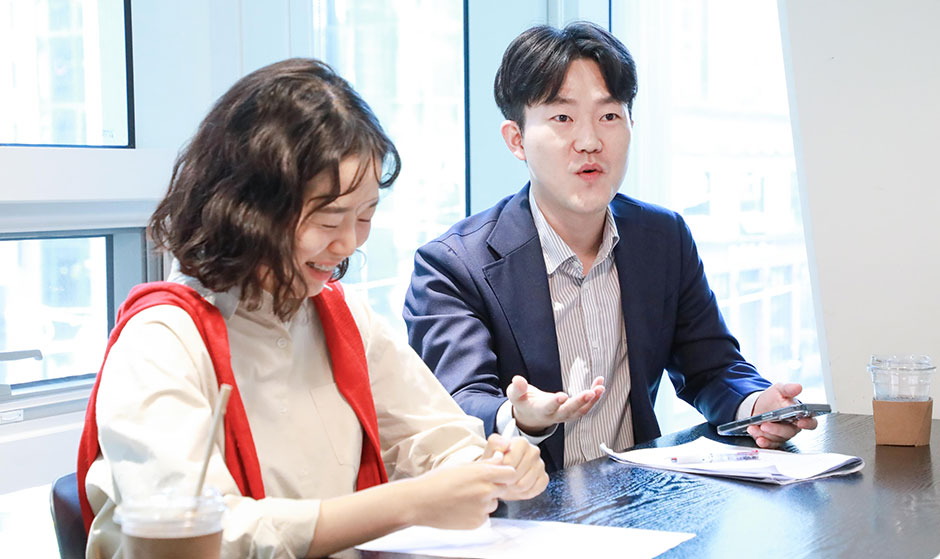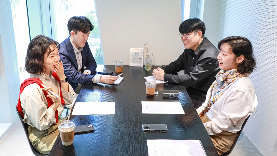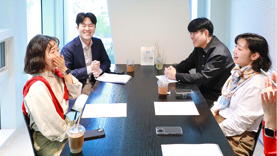 허지수 선임 팀장님이 여러 차례 아이디어 회의를 열어주셨어요. 직원들이 낸 아이디어를 모아 스토리라인을 구성했고, 영업 직무를 배경으로 한 만큼 현업 선후배들에게 자문을 구했습니다. 현장에서 쓰는 실제 표현까지 검수받아 현실감 있게 완성할 수 있었어요.