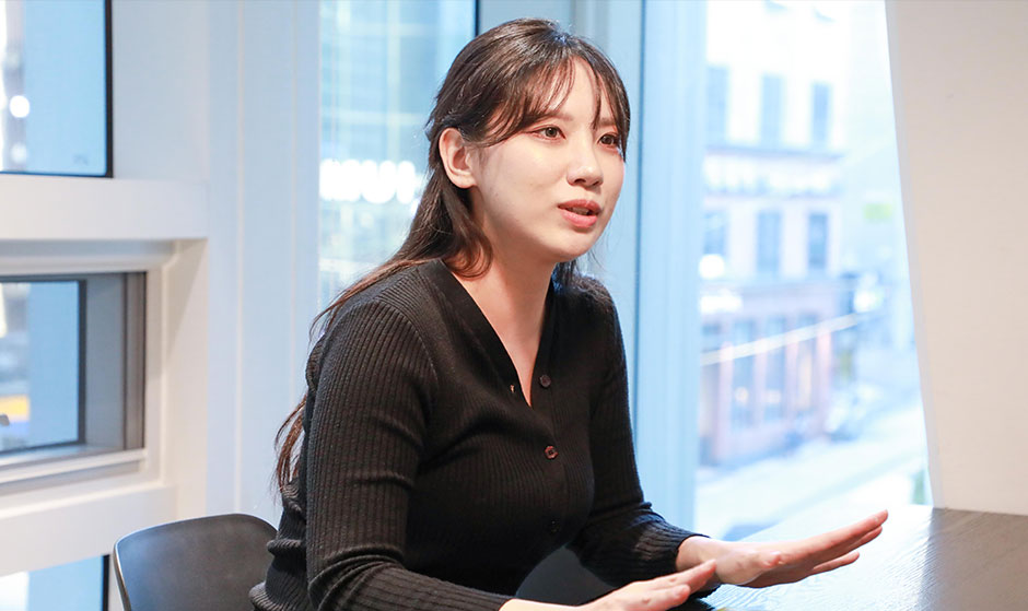 안다솜 책임 i.Lab과 협업해 본 적은 있지만, 지혜 사원님과 직접 일할 기회는 없었거든요. 촬영 날 복도에서 지혜 사원님이 혼자 “아니야, 아니야” 하며 이렇게, 저렇게 연습해 보는 모습이 정말 귀엽고 인상 깊었습니다. 얼굴은 알고 있었지만, 이렇게 열정적인 동료라는 걸 새삼 느꼈어요.