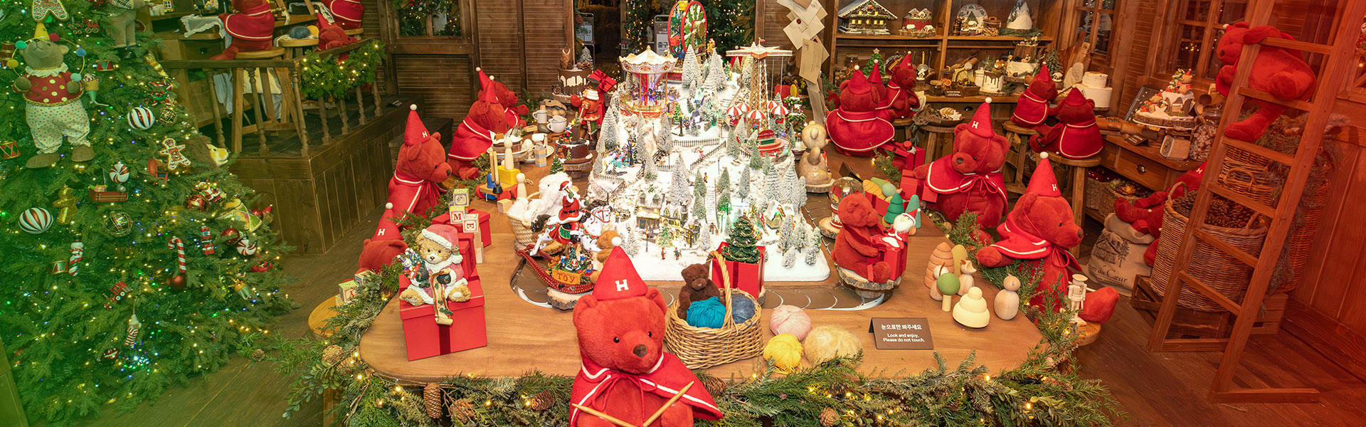 매년 겨울, 백화점의 귀염둥이 아기 곰 해리는 특별한 크리스마스를 준비합니다. 2022년에는 곡물창고의 문을 열어 마을 사람들과 따뜻한 크리스마스를 보내고, 2023년에는 ‘꿈의 상점’을 운영하며 행복한 크리스마스의 꿈을 선물했습니다. 지난해에는 ‘움직이는 대극장’을 찾기 위해 열기구에 몸을 싣고 하늘 높이 여행을 떠나기도 했죠.