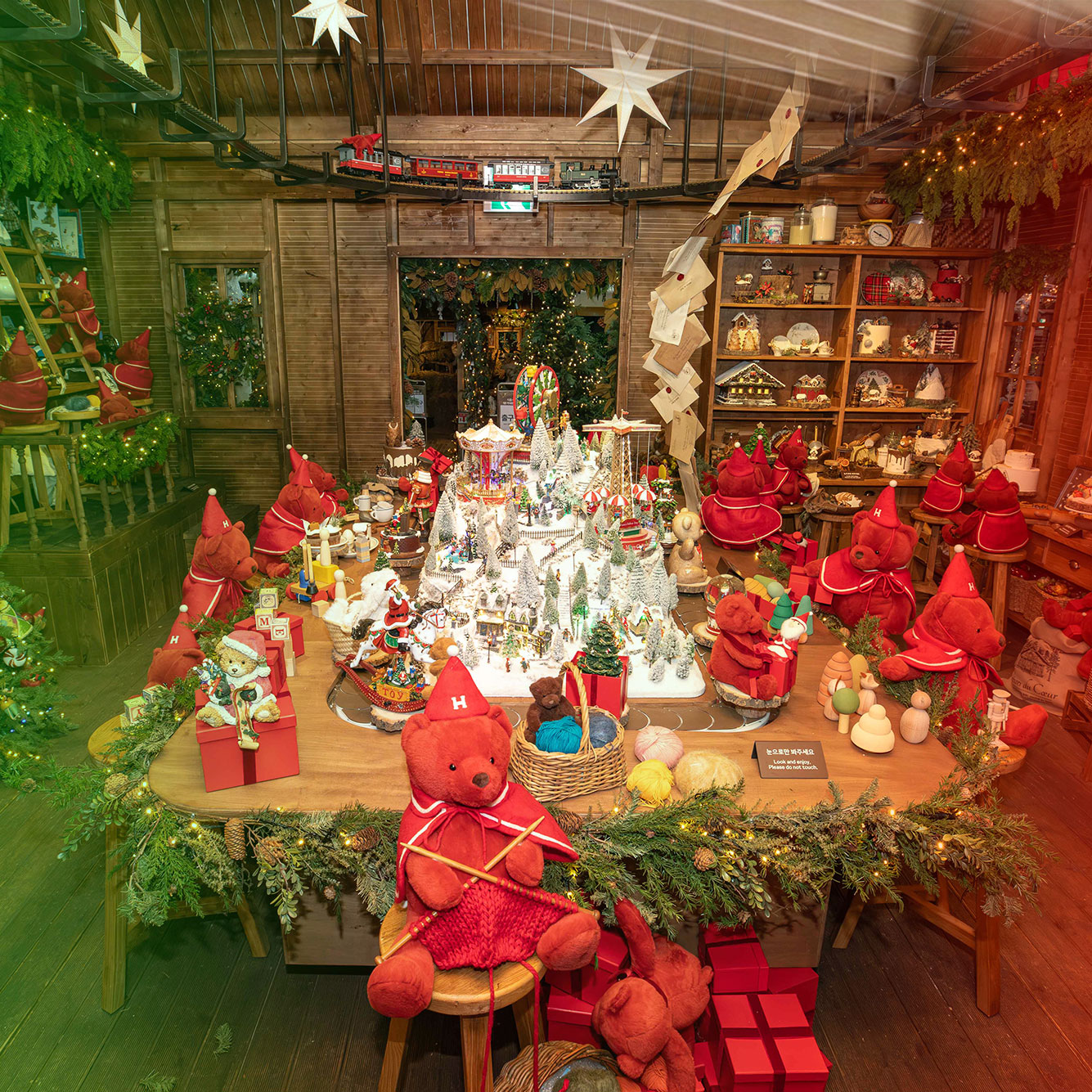 해리가 이곳저곳 뛰어다니며 열심히 크리스마스를 준비한 더현대 서울 5층 사운즈포레스트 H.빌리지 ‘해리의 크리스마스 공방’은 산타의 집, 편지 공방, 선물 공방, 포장 공방, 루돌프의 집, 선물상점 등 총 5개의 연출공간과 1개의 PB샵으로 구성됐습니다.