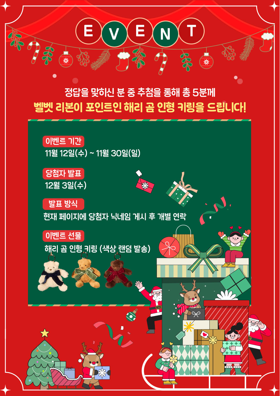 🎄 해리의 크리스마스 공방에 숨은 정답을 맞히면 선물이 와르르!
