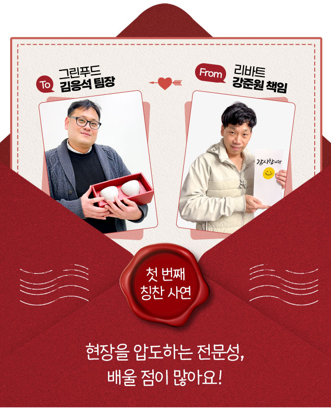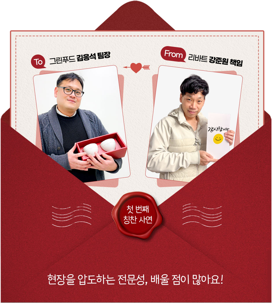수년간 쌓아오신 내공 덕분에 주변 직원들 사이에도 신임이 두터우신데요. 저 역시 팀장님과 협업하며, 현장에서 문제가 발생했을 때 보여주시는 순발력 있는 대처 능력에 감탄하곤 했습니다. 무엇보다 협력사와의 상생을 중요하게 생각하는 마인드는 제가 꼭 배우고 싶은 점입니다. 열심히 하시는 만큼 앞으로도 계속 승승장구하시길 응원합니다!