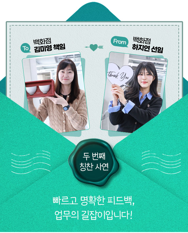 서로에게 건네는 따뜻한 응원으로 2026년 칭찬릴레이의 문을 활짝 엽니다! 이번 칭찬릴레이는 긍정적인 에너지로 주변을 환하게 밝히는 주인공들이 선정되었습니다. 올 한 해 우리 그룹에 훈훈한 온기를 불어넣어 줄, 기분 좋은 사연들을 만나보시죠.