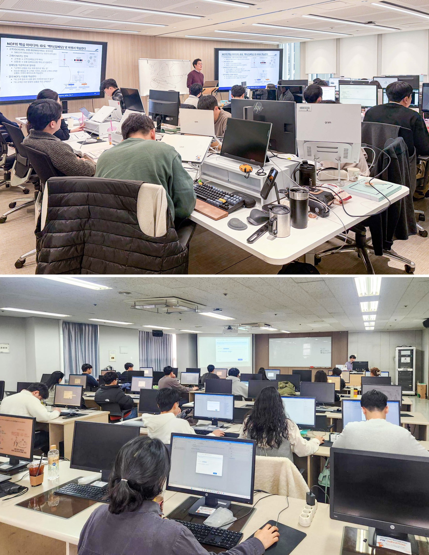 이번 교육에는 각 계열사에서 선발된 임직원 40여 명이 참여 중입니다. 특히, CDS 교육은 연세대학교 산업공학과와 협력해 20여 명의 교육생들이 머신러닝, 딥러닝, 파이썬 등 AI 과정을 이수하고 있습니다. 오전에는 심도 있는 이론 수업을, 오후에는 이를 실제 코딩으로 구현하는 실습 위주의 커리큘럼을 배치해 교육생들이 AI 이론과 모델링에 자연스럽게 익숙해질 수 있는 환경을 조성했습니다. 현장의 반응 또한 매우 긍정적입니다. 생소할 수 있는 AI 이론을 유통, 서비스, 제조 등 실제 산업 현장의 사례에 접목해 설명함으로써 교육생들의 이해도를 크게 높였습니다.