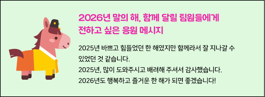 연초부터 모두 바쁘게 일하시는 중인데, 간식 덕분에 소소하게 팀원들과 대화할 시간을 가질 수 있어서 좋았습니다. 이제 프로젝트 막바지인데요, 마지막까지 달릴 수 있는 큰 힘이 되었습니다. 감사합니다!