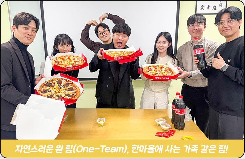 잦은 미팅과 현장 업무로 전체 팀원이 함께 모이는 일이 쉽지 않았는데, 부산의 명물 '이재모피자' 덕분에 잠깐이나마 하나가 되어 소중한 시간을 나눌 수 있었습니다.